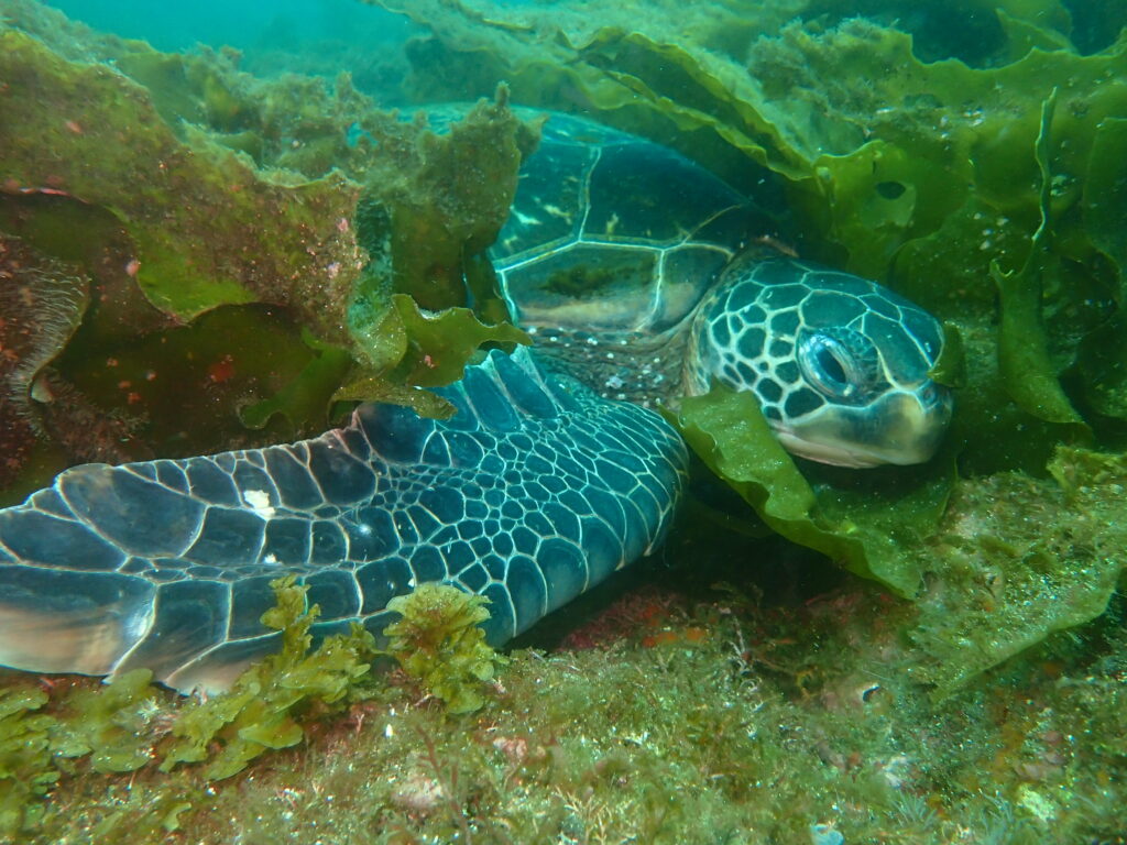 水底で寝ているカメさん