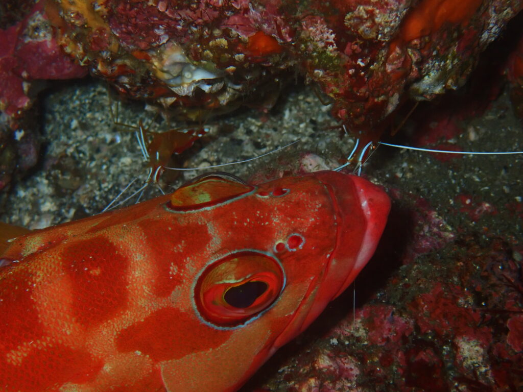アカハタをクリーニング中の